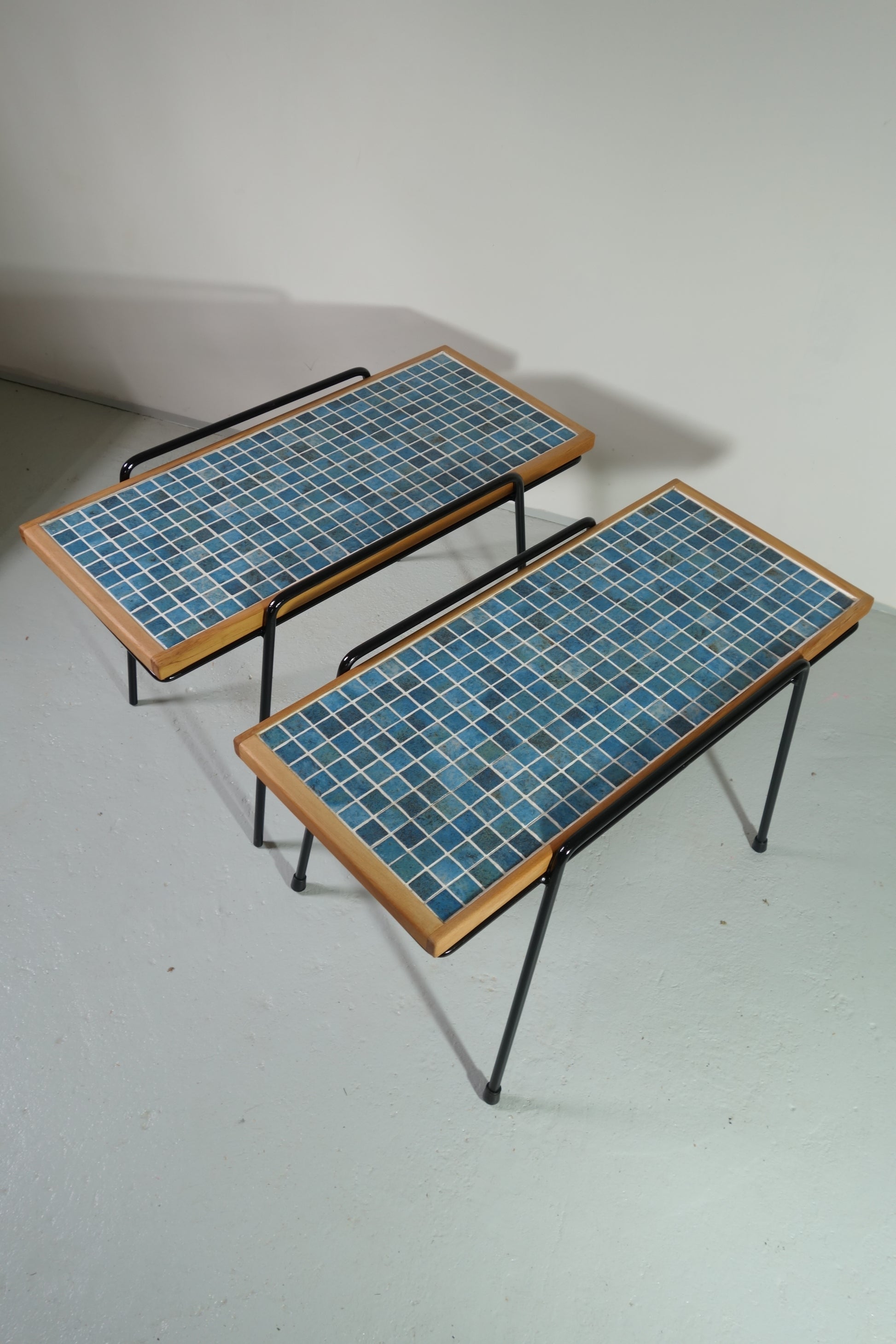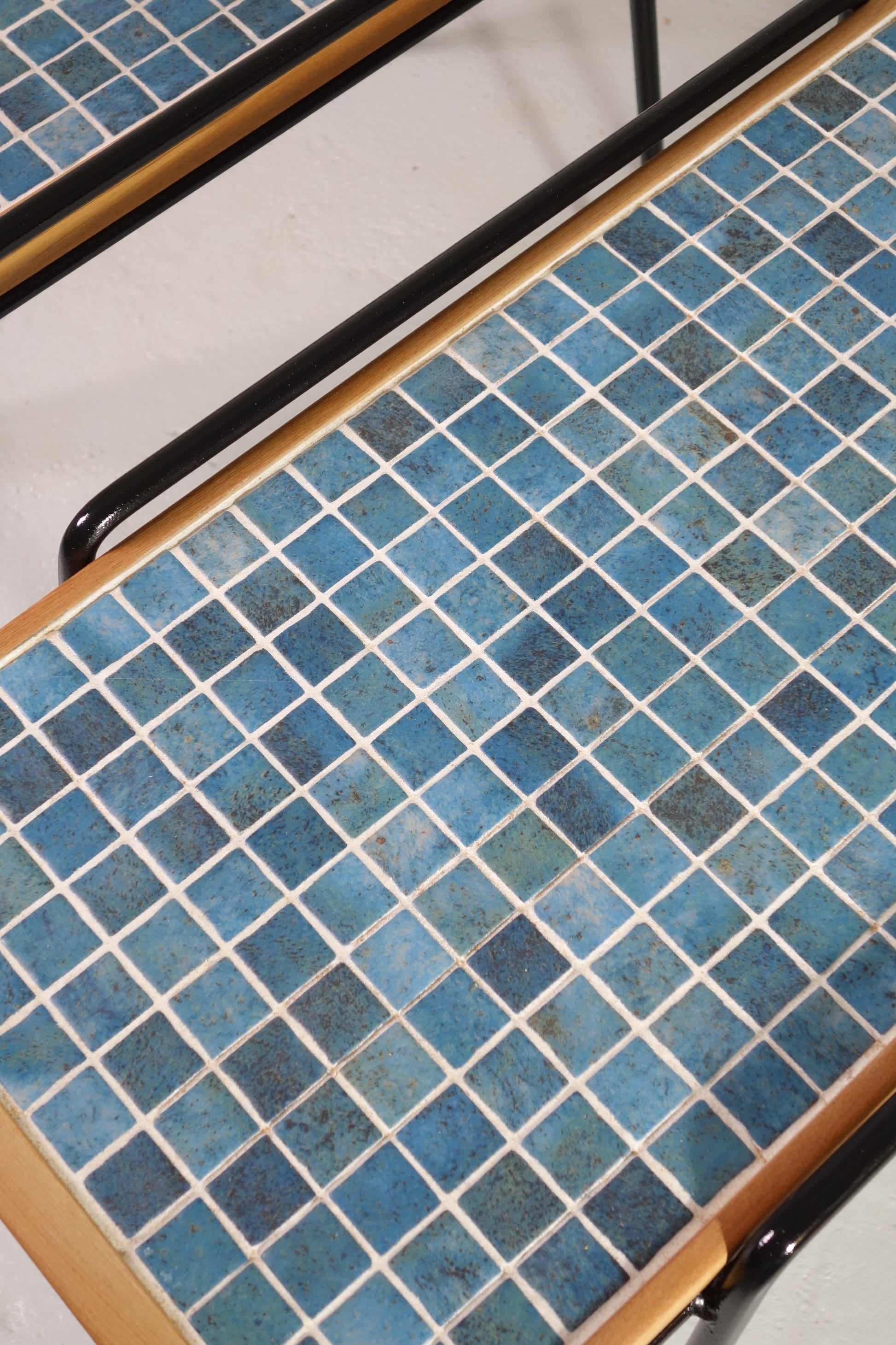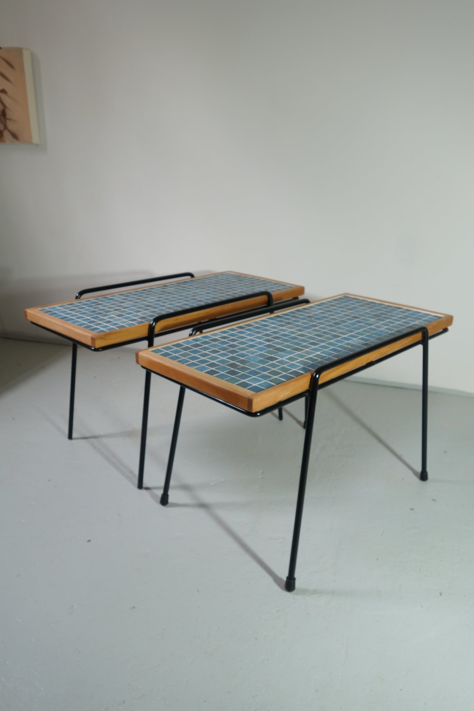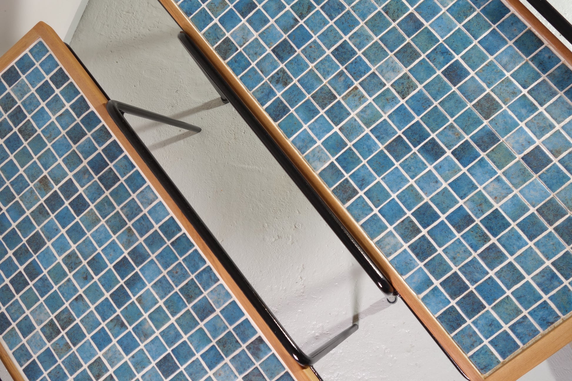 We have two gorgeous blue tables available to purchase. Made with recycled glass tiles and vintage metal frames. Enjoy the deep blue colour and add a touch of vibrance to your living space.