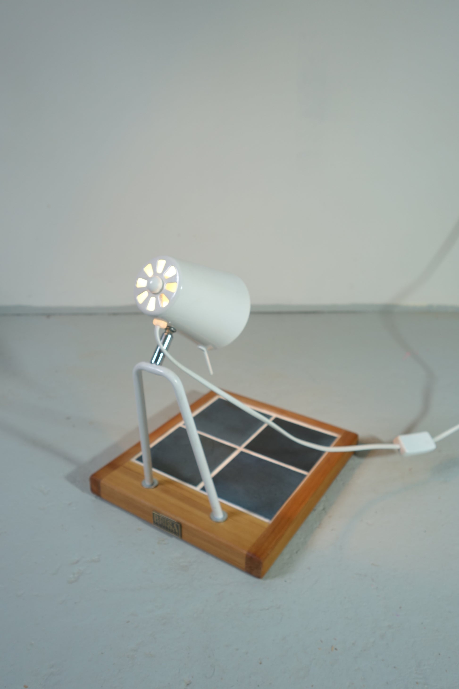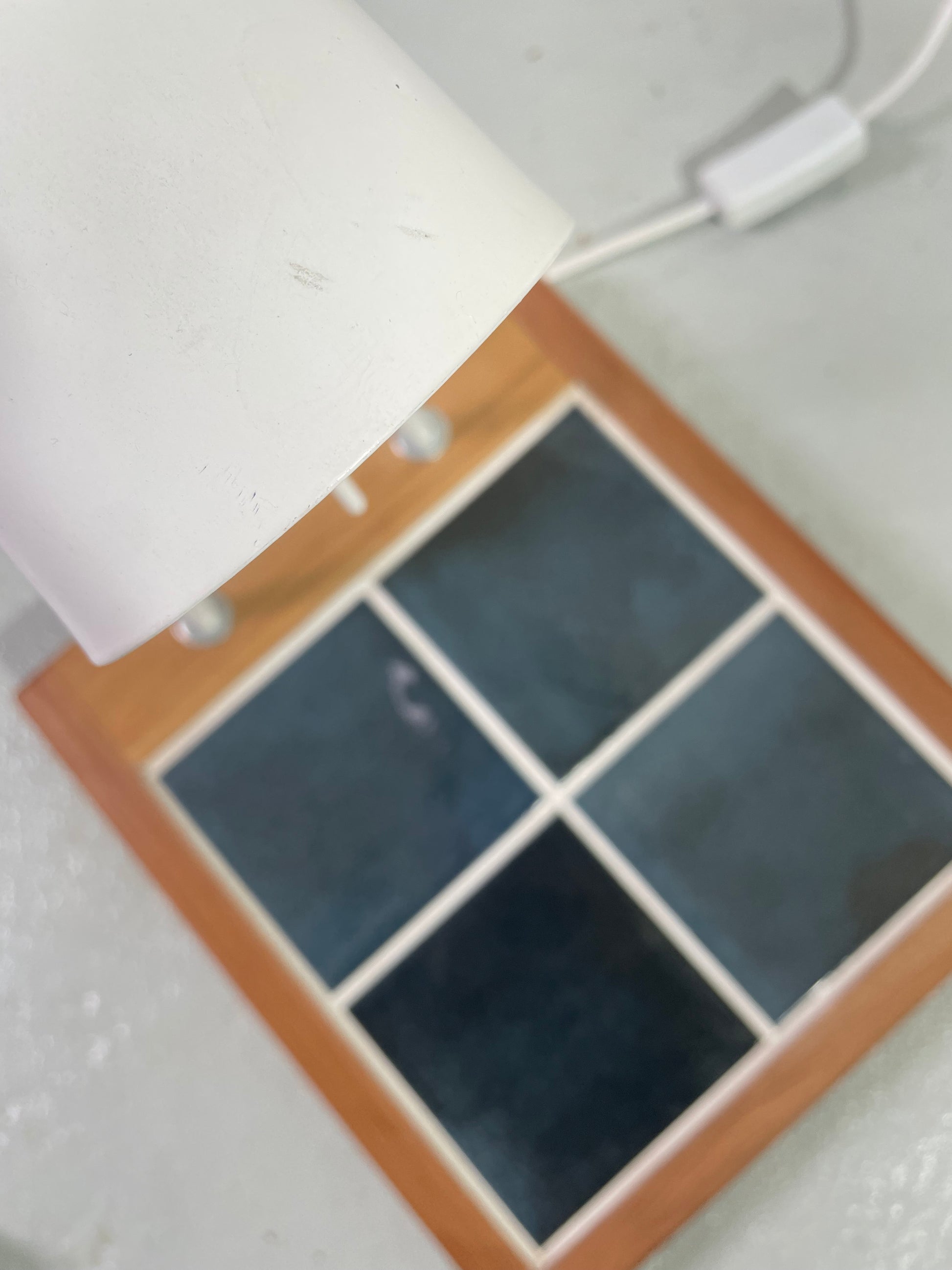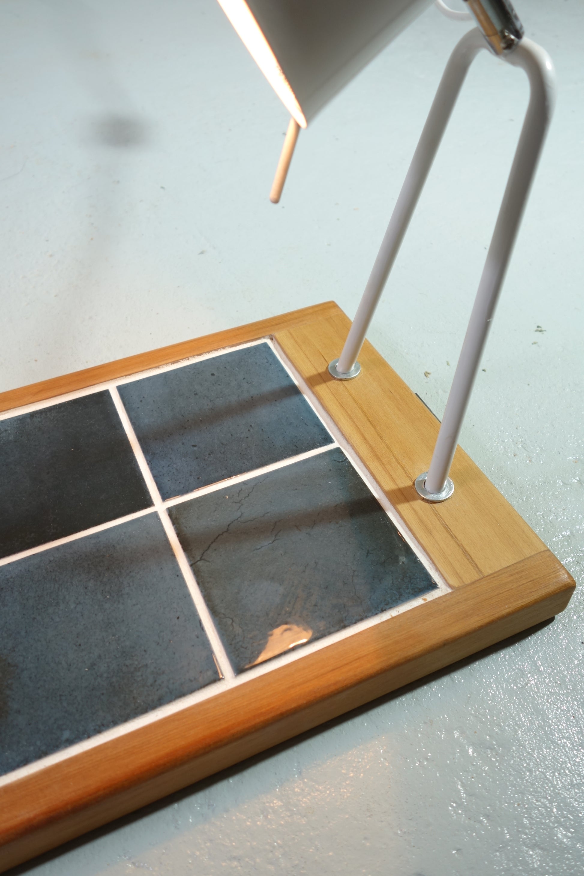 This lamp is upcycled with an additional tiled base, making it the perfect table lamp. Protect your wooden surfaces by using the tiled base for drinks and other treats.